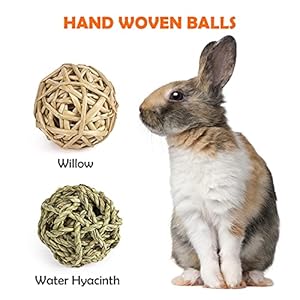 ENTERTAIN&EXERCISE: The rabbit toys are well made and bite-resistant. The handmade woven balls (no glue, no additive, no metal) are great for playing and nibbling in addition to foraging toys by putting some treats into them. Great selection of small animal enrichment toys for your little friends.