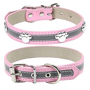 PETCARE Reflective Dog Collar with Cute Paw Rivet Studded Funny Soft PU Leather Adjustable Puppy Dog Collars for Small Medium Large Dogs Cats (Pink,Small)