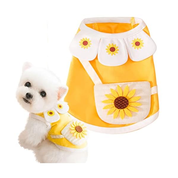【Stylish Sunflower Dog Shirts】: This adorable dog T-shirt features a charming sunflower pattern that will make your furry friend look stylish and cute.The petal collar and sunflower design add a trendy touch to this classic puppy T-shirt,making it the perfect addition to your pet’s wardrobe.
