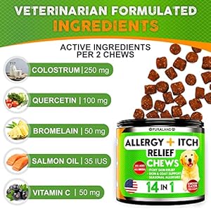 Allergy Relief – prevent environmental pollutants, seasonal and food allergies, ease symptoms like paw licking, itching, chewing & scratching, irritation, bald spots, rashes and hot spots