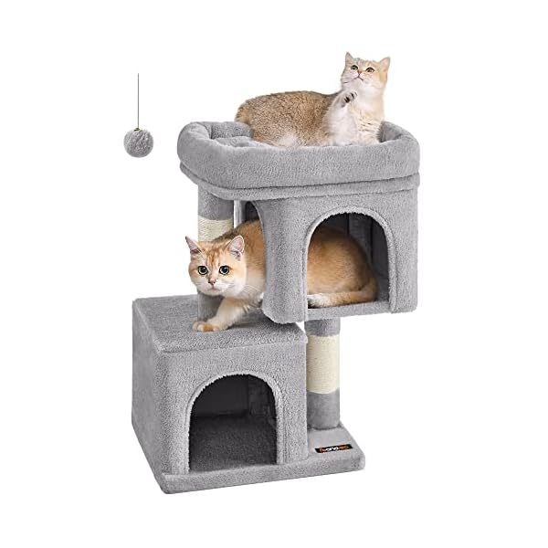 Feandrea Cat Tree, 26.4-Inch Cat Tower, S, Cat Condo for Kittens up to 7 lb, Large Cat Perch, 2 Cat Caves, Scratching Post, Light Gray UPCT611W01
