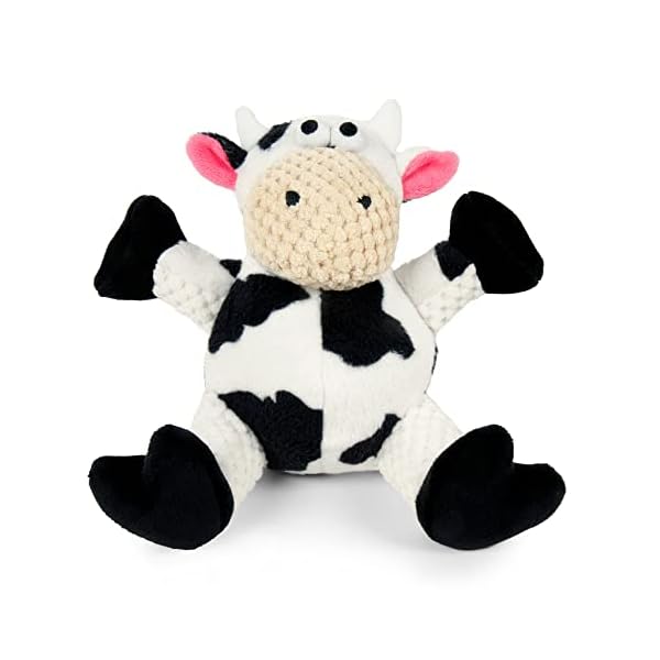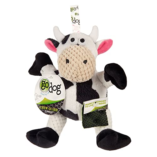 goDog Checkers Sitting Cow Squeaky Plush Dog Toy, Chew Guard Technology – White, Small