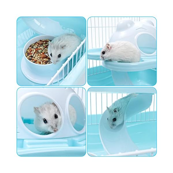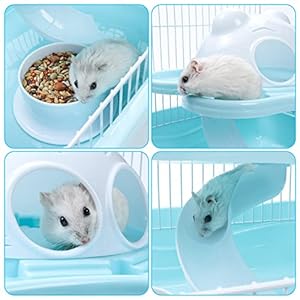 Fun: Hamster cage is equipped with roller, food basin and leakproof kettle, which can eat, sleep and play.