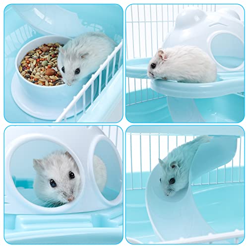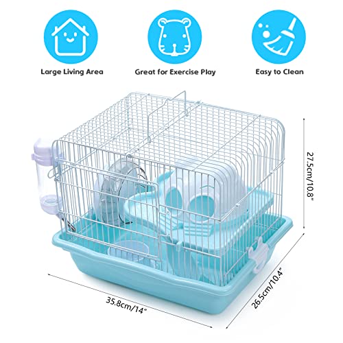 Hamster Cage,2 Layers Cage,with Running Exercise Wheels, Water Bottle and Hamster Toys,10.4 * 14 * 10.8In, Suit for African Miniature Rabbit Chinchilla Squirrel and Other Small Animals