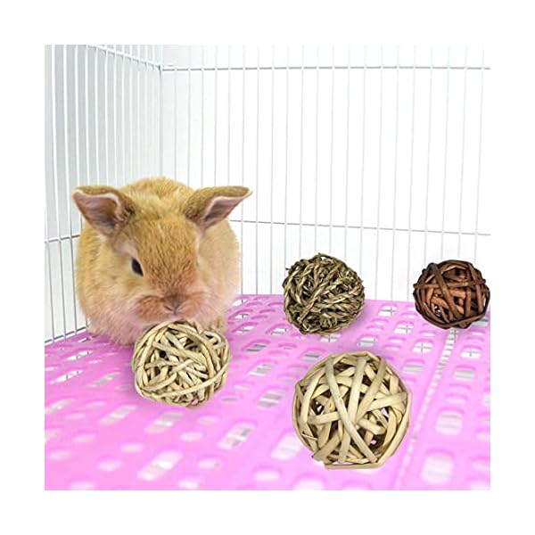 【NATURAL MATERIALS】These balls are made from 100% natural materials, no glue, plastic or metal.including timothy,seaweed,corn leaf,black cane and wicker.It is very good for your little animal.Important to encourage interest, curiosity and movement from your furry friend, such as bunny loves push it around the cage and gnaw or shred it when boredom.