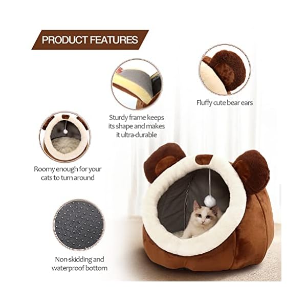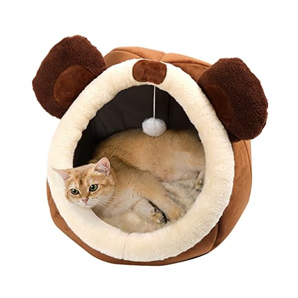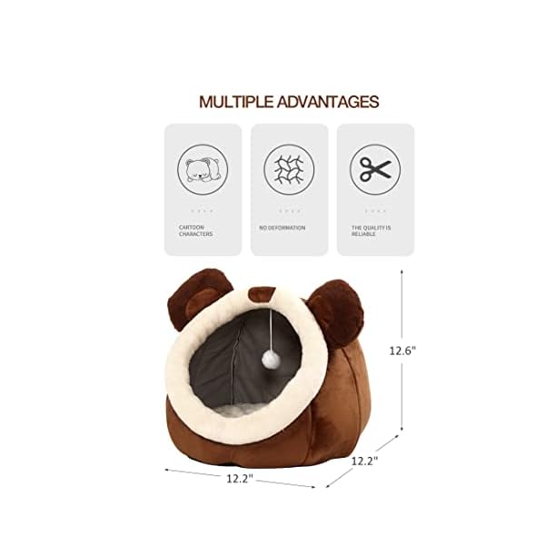 Lcybem Cat Beds for Indoor Cats – Cat Bed Cave with Removable Washable Cushioned Pillow, Soft Plush Premium Cotton No Deformation Pet Bed, Roomy Bear Cat House Design, Multiple Sizes-S