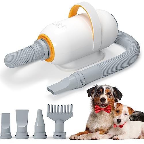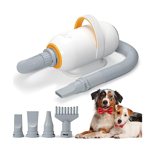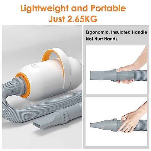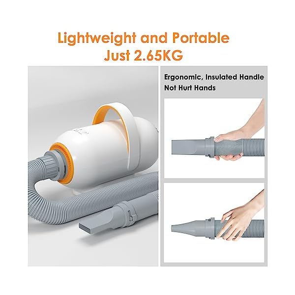 【Comes with 4 Types of Nozzles】Four different nozzles suited to different fur types and parts of your pup’s body, Wide flat Nozzl, Flat Nozzle, Cylinderical Nozzle, Finger Nozzle, blow dryer for dogs will help you achieve peak dog fluffiness in no time at all.