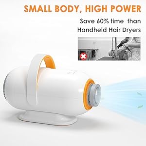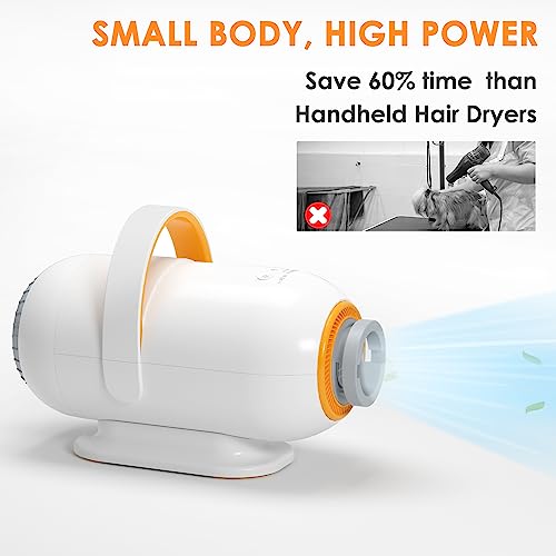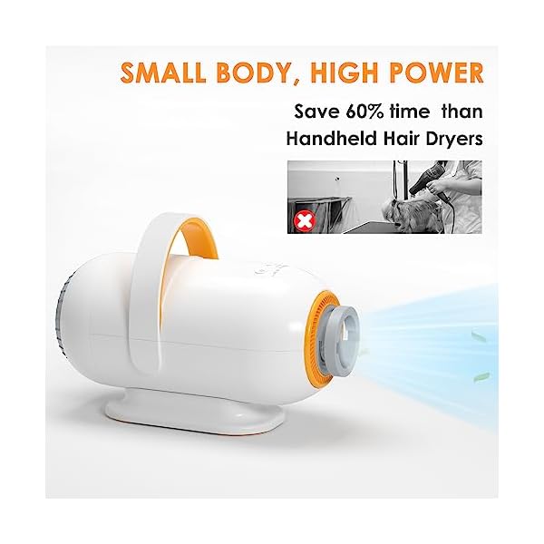 【Small Body, High Power】MIAOTONG dog blower grooming dryer combines the efficiency of a large dryer with the portability of a compact design. Its strong motor Cuts down drying time by 60% than Handheld Hair Dryers 2800W High Power, Weighs only 5.8 lbs, and New and special appearance, Small and Convenient, Say Goodbye to Bulky
