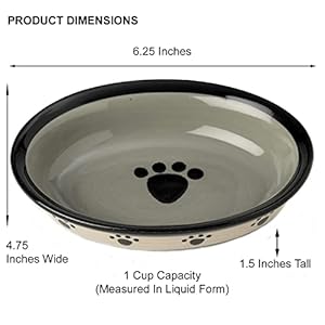 Petrageous Designs, Metro 6.25 inch x 1.5 inch Oval Bowl, Holds 1 Cup. All of our stoneware is 100% hand crafted making every bowl unique. All of our procducts are pet friendly and made to FDA Standards. This Bowl is Microwave/Dishwasher safe.