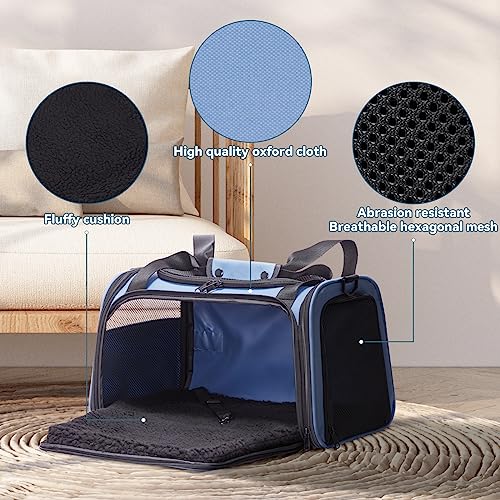 [Portable & Collapsible] The tsa approved pet carrier can also be used as a soft-sided crate for regular outings and vet visits with cats and small dogs, it comes with a removable machine washable cozy mat and a large pocket. When not in use, just unzip it and fold it down into a flat package for storage.