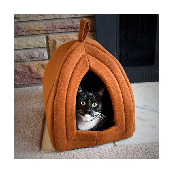 LARGE CAT IGLOO – The enclosed cat tent is designed to cradle your pet to achieve maximum privacy and soothing security for cats, kittens, or small dogs. The brown colored cat teepee is sure to easily blend into most home décor.