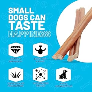 SINGLE INGRIDIENT 🐾: your dog will enjoy their high protein content, which makes them a healthy and satisfying snack for him, either if he is a small dog or a medium dog. Free of any rawhide or other artificial ingredients, bully sticks ensure a nutritious treat that will make your furry friend happy. Provide your pup with natural snacks they will love.