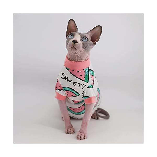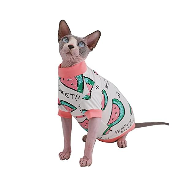 Sphynx Hairless Cat Cute Summer Cotton T-Shirts Pet Clothes,Round Collar Kitten Shirts Cats Apparel (Pink Watermelon, Medium (Pack of 1))